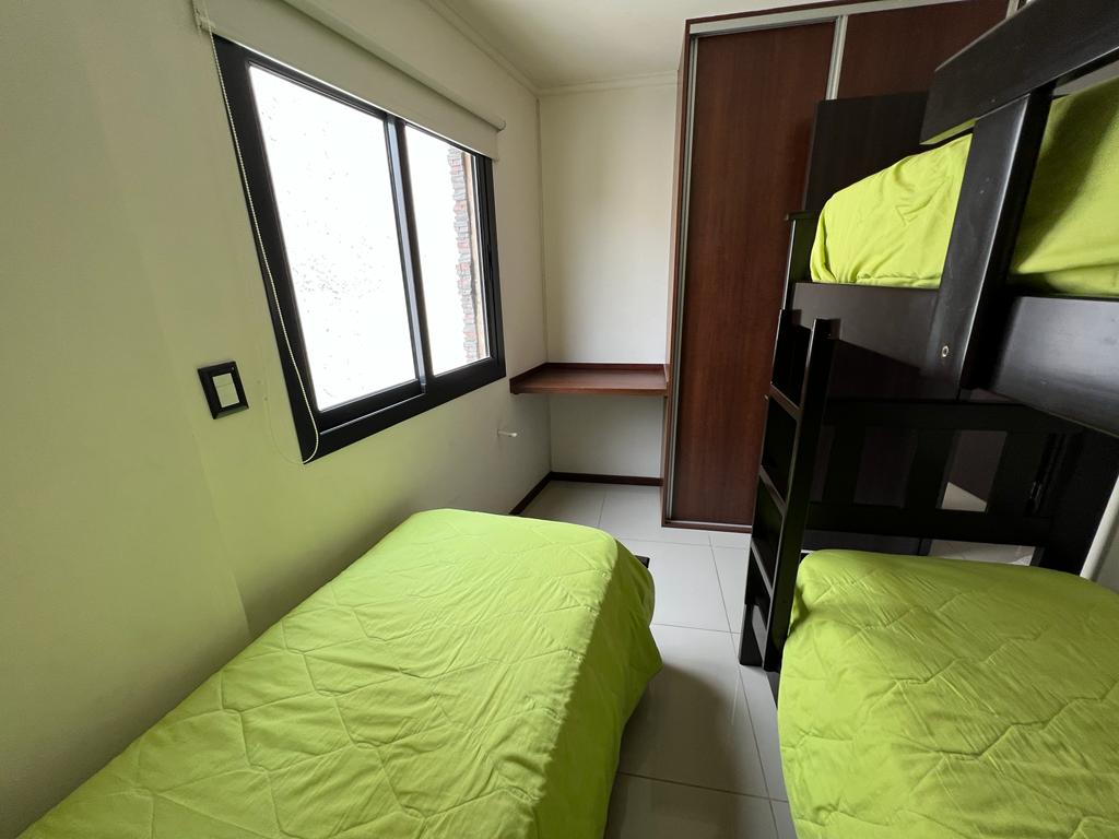 MIRALEJOS 8- 2 G – junior – Prep. para 5 personas. Un hermoso departamento en el edificio Miralejos VIII. A una cuadra del nuevo puente peatonal de la ciudad . Un edificio encantador con un ambiente familiar y una terraza al aire libre con piscina , quincho totalmente equipado y asadores. El departamento se ubica al frente con un balcón con vista a la costanera. Distribuido en cocina comedor, con TV , wifi, 2 aires acondicionados, dos habitaciones una con cama matrimonial y la otra con cama para tres. Termotanque eléctrico de alta recuperación. Un baño. Vajilla completa. Cochera para auto en subsuelo con montacarga. Ascensor desde el subsuelo a la terraza. Posee dos lobbies de entrada uno por costanera y otro por calle 9 de julio. Prepárate para unas vacaciones confortables e inolvidables. No incluye sabanas ni toallas. Comercializa Daniel Chaves Servicios Inmobiliarios. En el desarrollo de ventas de departamentos la inmobiliaria Daniel Chaves tiene las mejores propuestas en Villa Carlos Paz. Amplia oferta de inmuebles, lotes, casas, dúplex y departamentos en Carlos Paz. Somos un grupo de profesionales trabajando con el objetivo principal de satisfacer de un modo integral brindando respuestas a todas y cada una de sus necesidades. Gracias por seguir prefiriéndonos entre las inmobiliarias en Carlos Paz.-