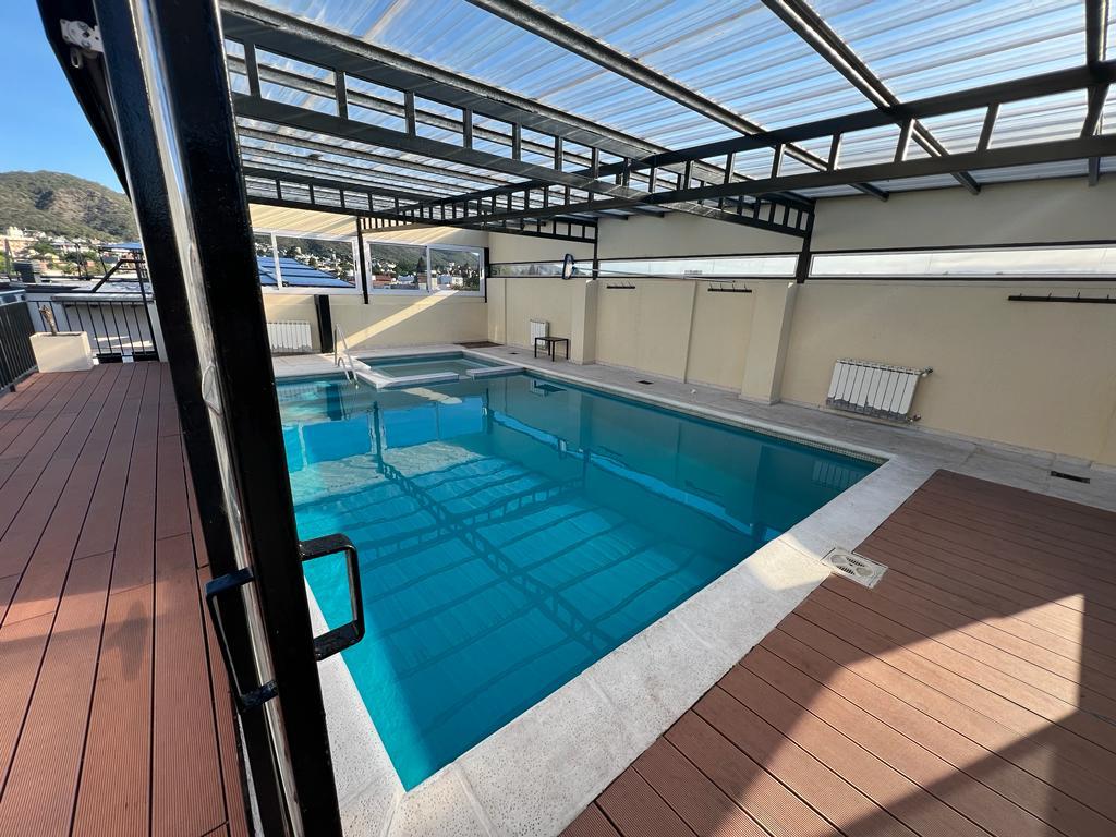 MIRALEJOS III. 2 M -junior-. Calle Juan B Justo 210. Ubicado a dos cuadras de la peatonal de Carlos Paz y la iglesia central. Un departamento de dos dormitorios preparado para 6 personas. Con una cama matrimonial en el dormitorio principal, dos camas en el otro dormitorio y dos sillones cama individuales en el estar comedor. Aire acondicionado. Tv con cable. Vajilla completa. No incluye sabanas ni toallas. Ascensor desde el subsuelo a la terraza. Cochera cómoda en subsuelo. Posee una terraza para disfrutar con dos piscinas, una al aire libre y otra climatizada, asadores, un quincho cerrado climatizado totalmente equipado , con wifi en azotea, juegos al aire libre para niños. Comercializa Daniel Chaves Servicios Inmobiliarios. En el desarrollo de ventas de departamentos la inmobiliaria Daniel Chaves tiene las mejores propuestas en Villa Carlos Paz. Amplia oferta de inmuebles, lotes, casas, dúplex y departamentos en Carlos Paz. Somos un grupo de profesionales trabajando con el objetivo principal de satisfacer de un modo integral brindando respuestas a todas y cada una de sus necesidades. Gracias por seguir prefiriéndonos entre las inmobiliarias en Carlos Paz.-