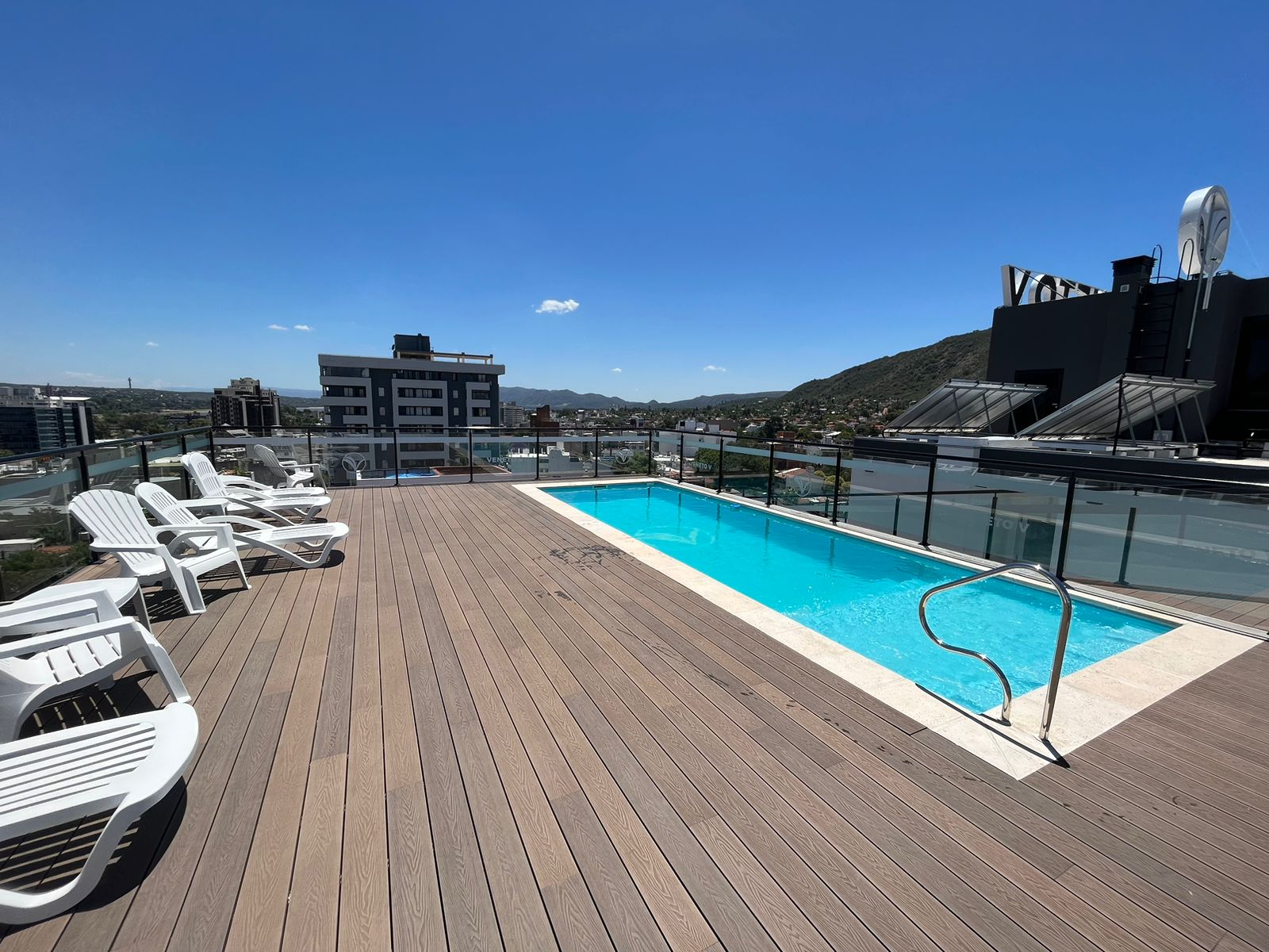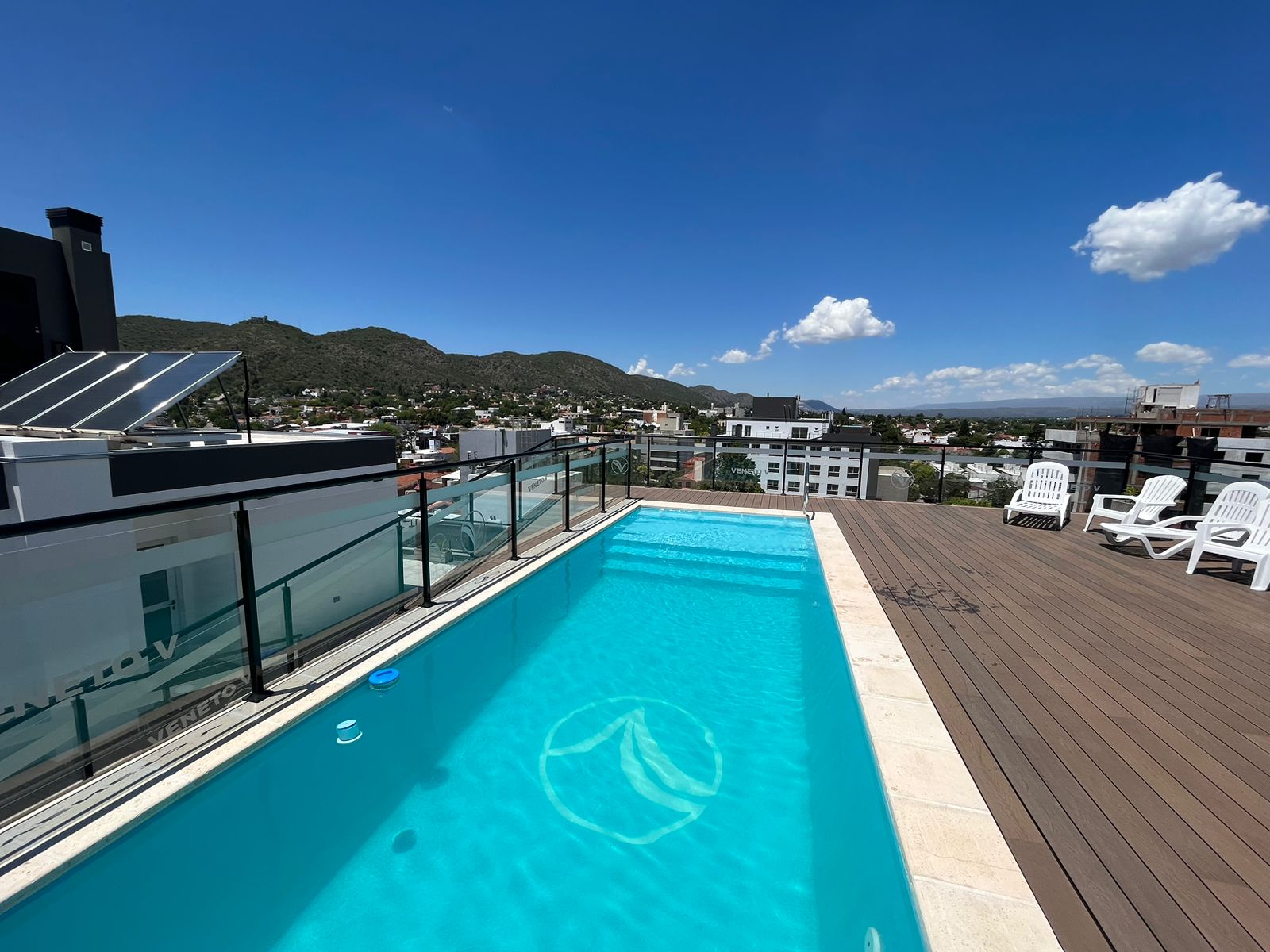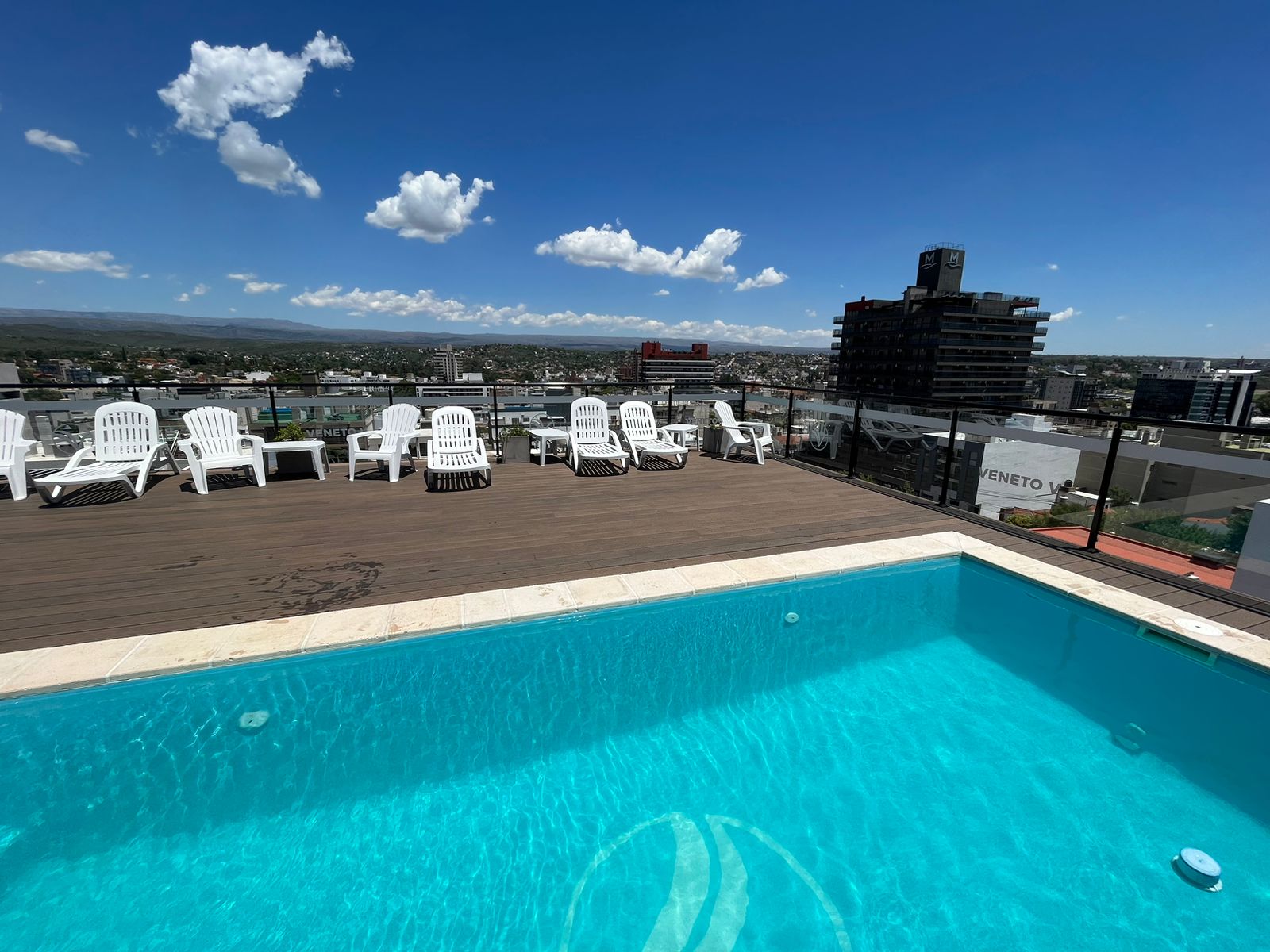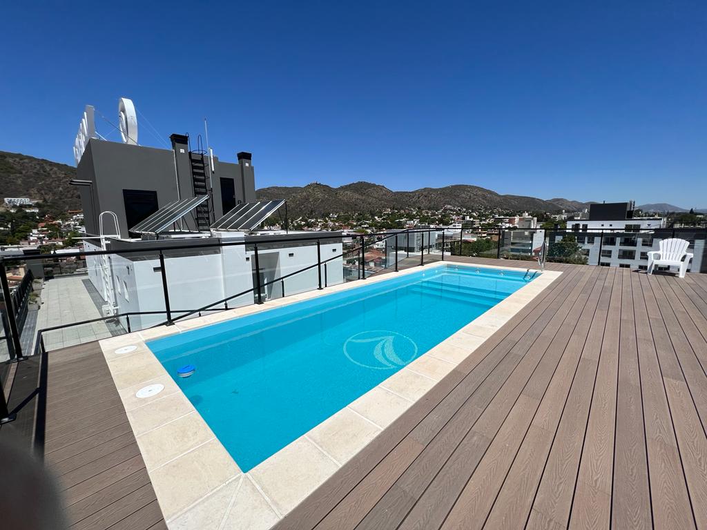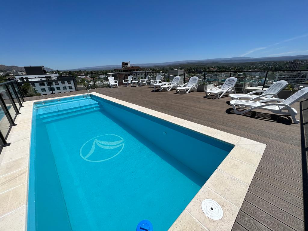 VENETO 5- Departamento junior superior- Hermoso y confortable departamento en 2do piso en la torre de VENETO 5 ubicada a dos cuadras de la peatonal de la Ciudad y el Mc Donals . El departamento cuenta con una cocina comedor muy luminosa, UN dormitorio con baño. Equipado de primer nivel: aire acondicionado en cada ambiente, Tv Y wifi. Una terraza panorámica con hermosa vista a la ciudad y las sierras con una piscina con deck , un sum totalmente equipado, baños asadores exteriores. Recuerde traer sabanas y toallas. cochera en subsuelo. Consulte costo de check out. Comercializa Daniel Chaves, En el desarrollo de ventas de departamentos la inmobiliaria Daniel Chaves tiene las mejores propuestas en Villa Carlos Paz. Amplia oferta de inmuebles, lotes, casas, dúplex y departamentos en Carlos Paz. Somos un grupo de profesionales trabajando con el objetivo principal de satisfacer de un modo integral brindando respuestas a todas y cada una de sus necesidades. Gracias por seguir prefiriéndonos entre las inmobiliarias en Carlos Paz.-