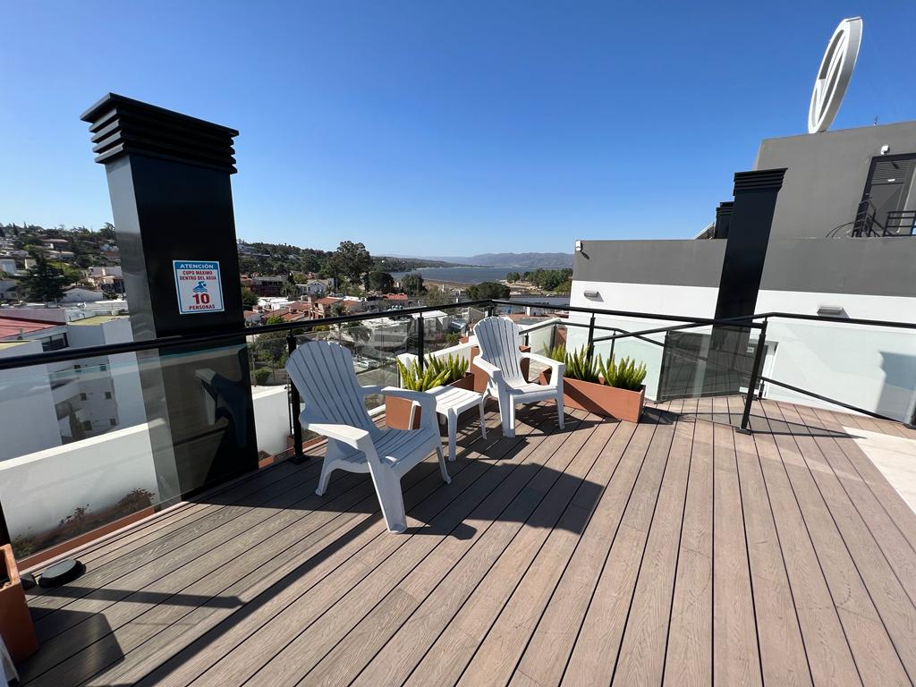 Edif. Veneto III. «Junior superior» Calle Biallet Masé 435. En esta oportunidad nos encontramos comercializando un departamento en el edificio Veneto III, a solo 20 metros del lago San Roque, frente al casino y a 5 cuadras de la peatonal y el puente central.- Esta unidad es de DOS dormitorios posicion lateral con un balcón, ideal para generar un espacio de estar y recreación.- Los ambientes son amplios, cuentan con pisos de porcelanatos y aberturas de aluminio.- La cochera en sub-suelo es de generosas dimensiones y en terraza se puede disfrutar de una piscina con amplio deck de madera, gimnasio y salón de usos múltiples con vistas directas al lago, la costanera y las sierras. Ideal para los amantes del lago San Roque.- También se dispone en alquiler temporario: Para 4 personas, aire acondicionado, tv con sommier matrimonial en una habitación y dos camas en la segunda pieza. Microondas, heladera. Consulte comodidades y servicios. Comercializa Daniel Chaves Servicios Inmobiliarios, En el desarrollo de ventas de departamentos la inmobiliaria Daniel Chaves tiene las mejores propuestas en Villa Carlos Paz. Amplia oferta de inmuebles, lotes, casas, dúplex y departamentos en Carlos Paz. Somos un grupo de profesionales trabajando con el objetivo principal de satisfacer de un modo integral brindando respuestas a todas y cada una de sus necesidades. Gracias por seguir prefiriéndonos entre las inmobiliarias en Carlos Paz.-
