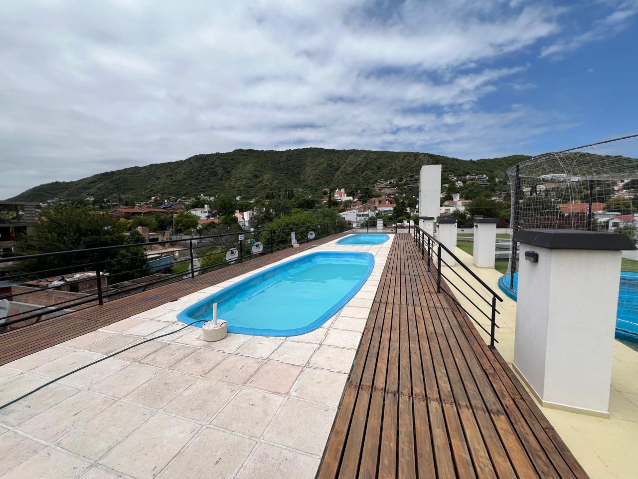 Amenities de nivel: Disfrutá de un solárium en la terraza con dos piscinas al aire libre, SUM para tus eventos y la comodidad de tu propia cochera en subsuelo.